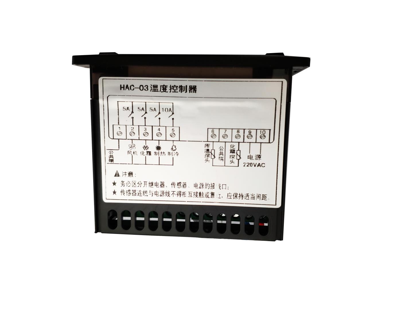 7、壓縮機繼電器容量:10A/220VAC 8、制熱、化霜、風機繼電器容量:5A/220VAC